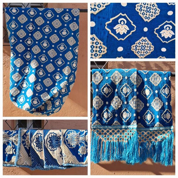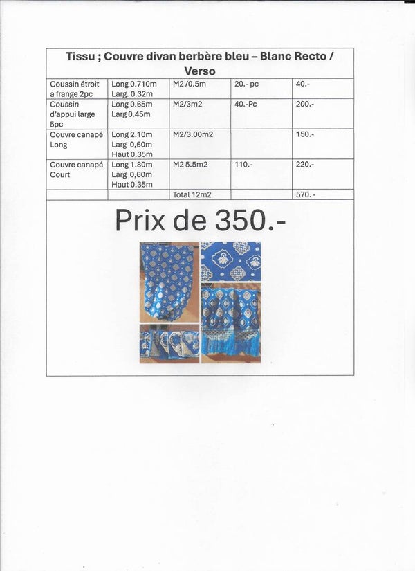 Tissu ; Couvre divan berbère bleu – Blanc Recto / Verso